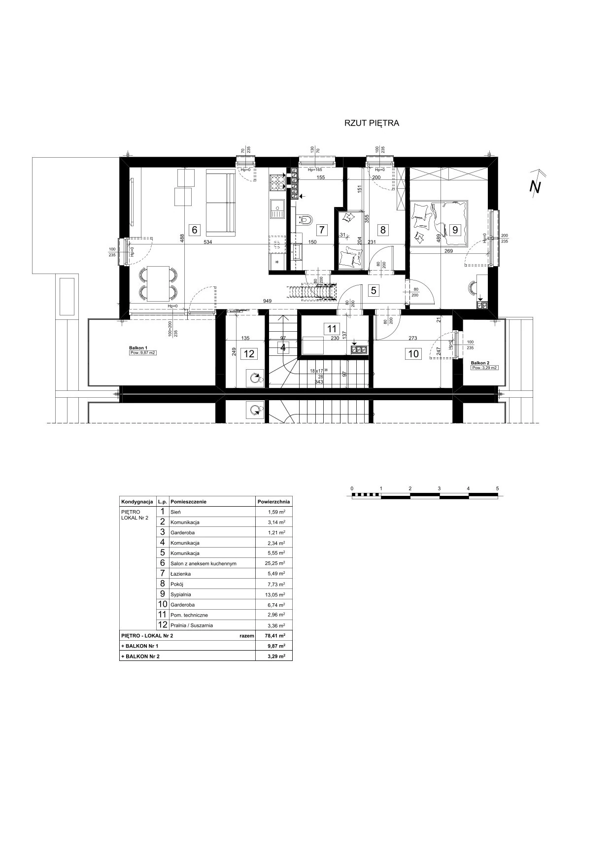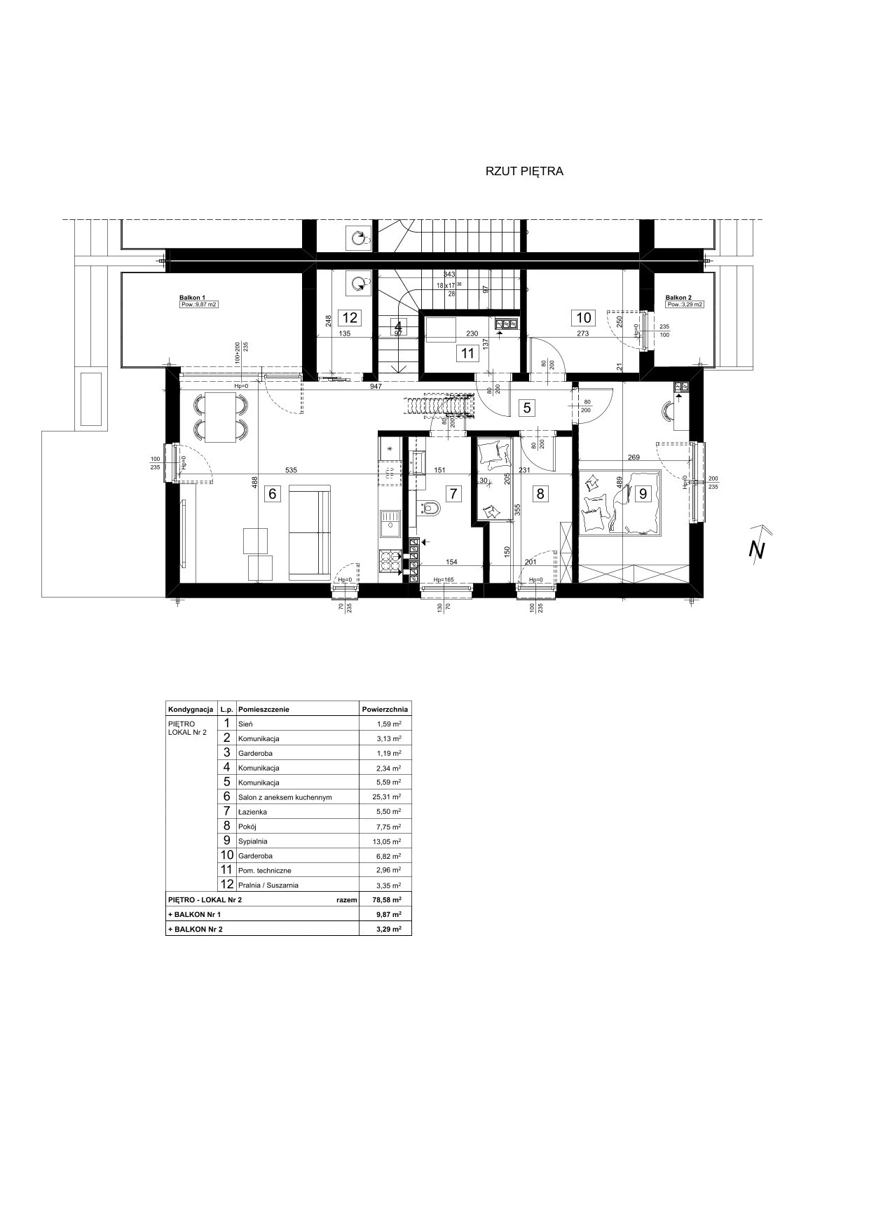 | A2 PIĘTRO | 78.80 m² Pow. użytkowej | BALKON NR 1 = 9,87 m² BALKON NR 2 = 3,29 m² | 7500 zł/m² | 591 000 zł brutto | Brak działki | Jedno miejsce parkingowe | Wolne |