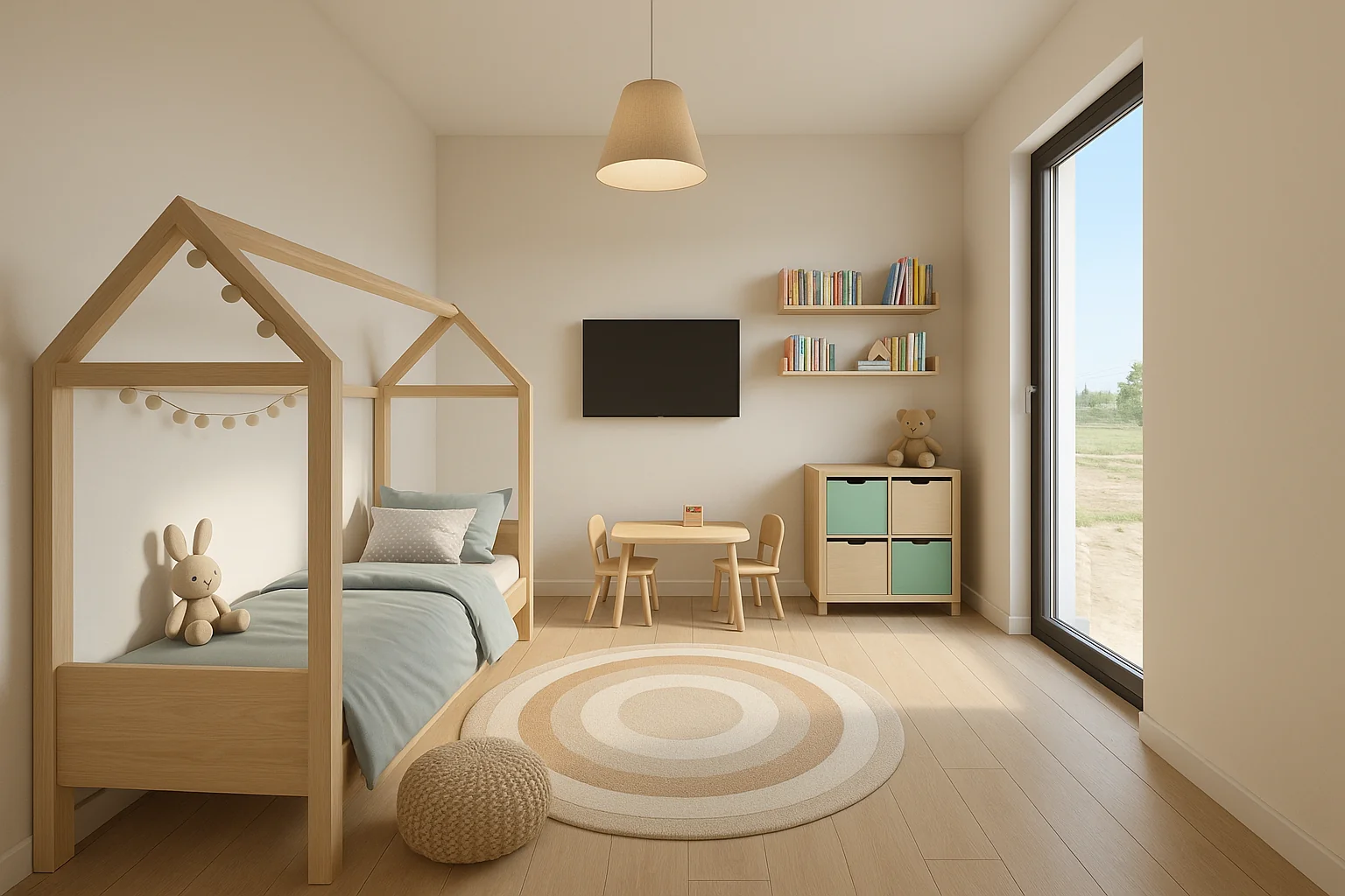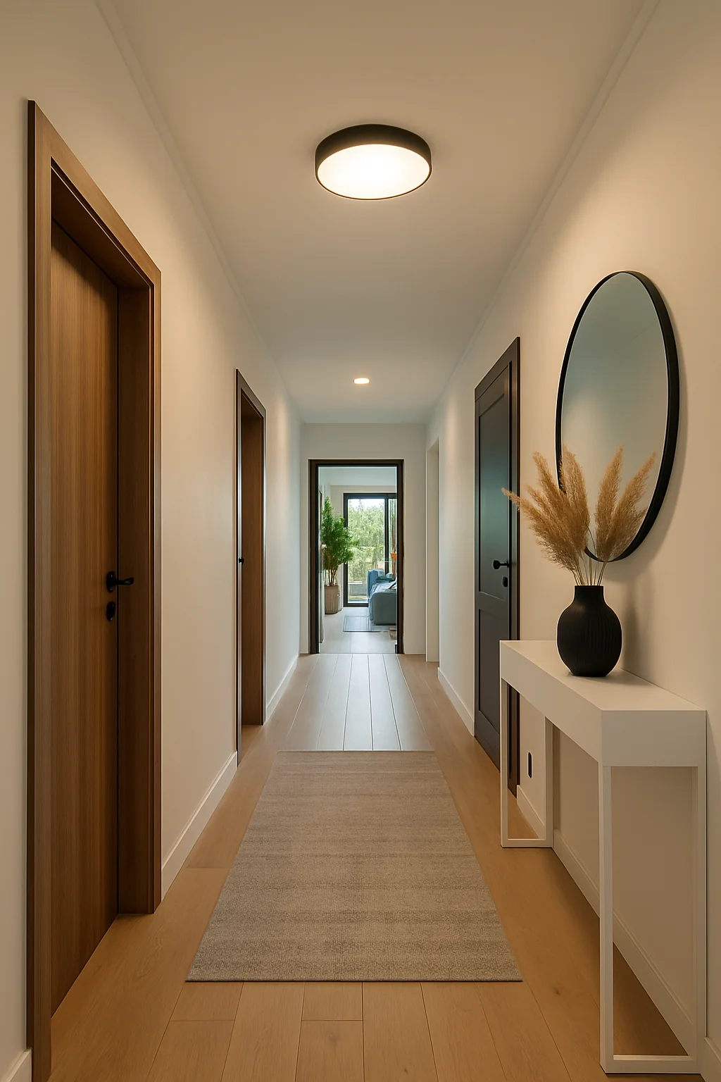 Uwaga: Wszystkie przedstawione wizualizacje wykończenia wnętrz mają charakter wyłącznie poglądowy, zostały wygenerowane przy użyciu technologii sztucznej inteligencji (AI) i nie stanowią oferty w rozumieniu art. 66 §1 Kodeksu cywilnego.